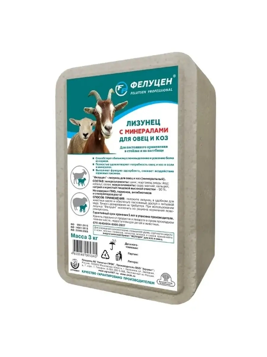 * Фелуцен лизунец с минералами для овец и коз 3 кг — 248 рублей.