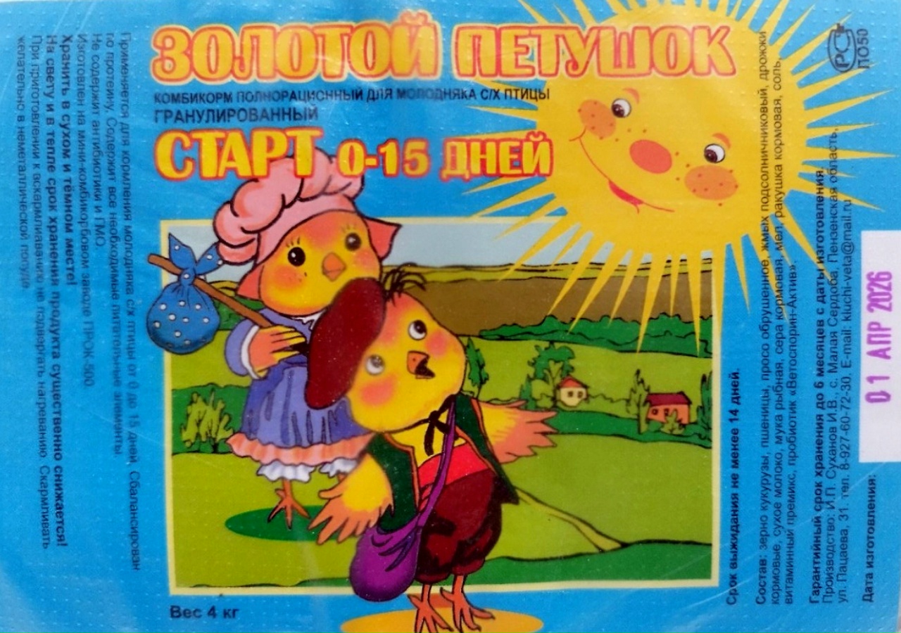 * Комбикорм «Золотой Петушок» НЕО СТАРТ 4 кг (крупка) — 230 рублей.