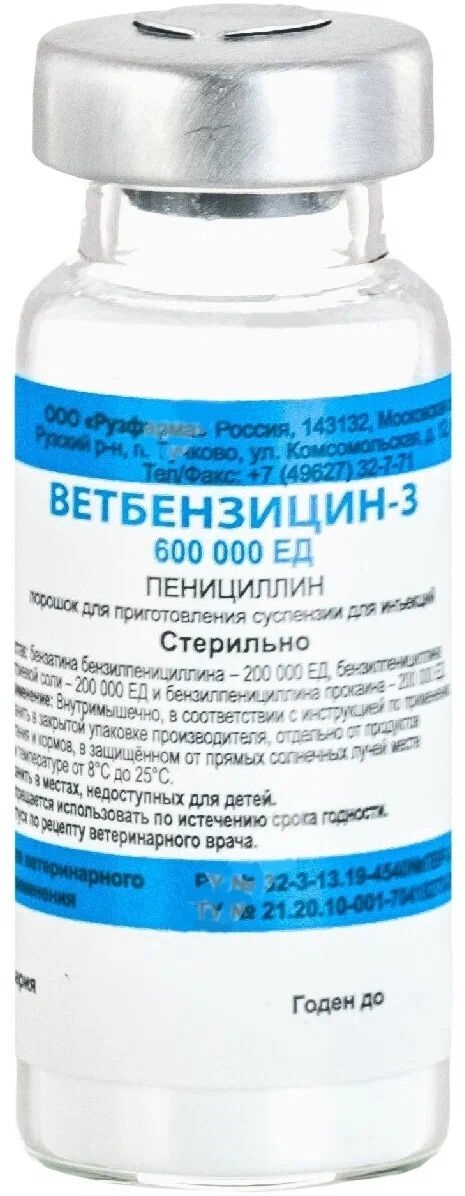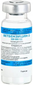 * Ветбензицин-3 (600 000 ЕД) №50 — 2958 рублей.