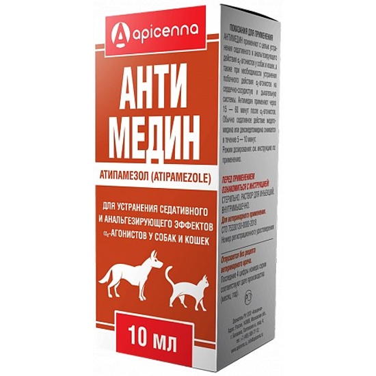 Применяют с целью устранения седативного и анальгезирующего действия α2-агонистов у собак и кошек, а также при необходимости устранения побочного действия α2-агонистов на сердечно-сосудистую и дыхательную системы. Антимедин применяют через 15 — 60 минут после α2-агонистов. Обычно седативное действие медетомидина или дексмедетомидина снимается в течение 5 — 10 минут.