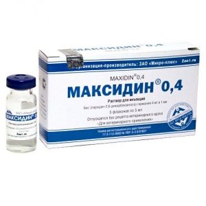 * Максидин инъекционный 0,4% 5 мл — 380 рублей.