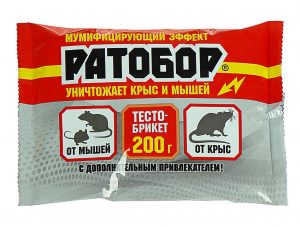 Ратобор — тесто-брикет, готовая приманка для уничтожения крыс и мышей. Препарат настолько привлекателен для грызунов своим запахом и вкусом, что они охотно поедают его даже при наличии другой пищи. Гибель грызунов наступает не сразу, а через 5-8 дней. Поэтому у других членов стаи не возникает опаски, в результате гибнет вся группа. Тушки умерших грызунов мумифицируются и не издают неприятного запаха. Препарат удобен при раскладке.