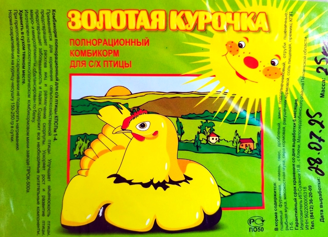 * Комбикорм «Золотая Курочка» 25 кг — 840 рублей.