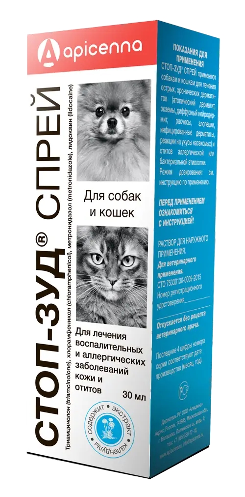Препарат для лечения воспалительных и аллергических заболеваний кожи и отитов у собак и кошек.