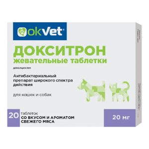 Докситрон жевательные таблетки назначают кошкам и собакам с лечебной целью при заболеваниях респираторной системы (ринит, тонзиллит, бронхопневмония), мочеполовой системы (цистит, пиелонефрит, простатит, эндометрит), кожи (гнойные дерматиты, абсцессы) и других ассоциированных инфекциях, вызванных возбудителями, чувствительными к доксициклину.