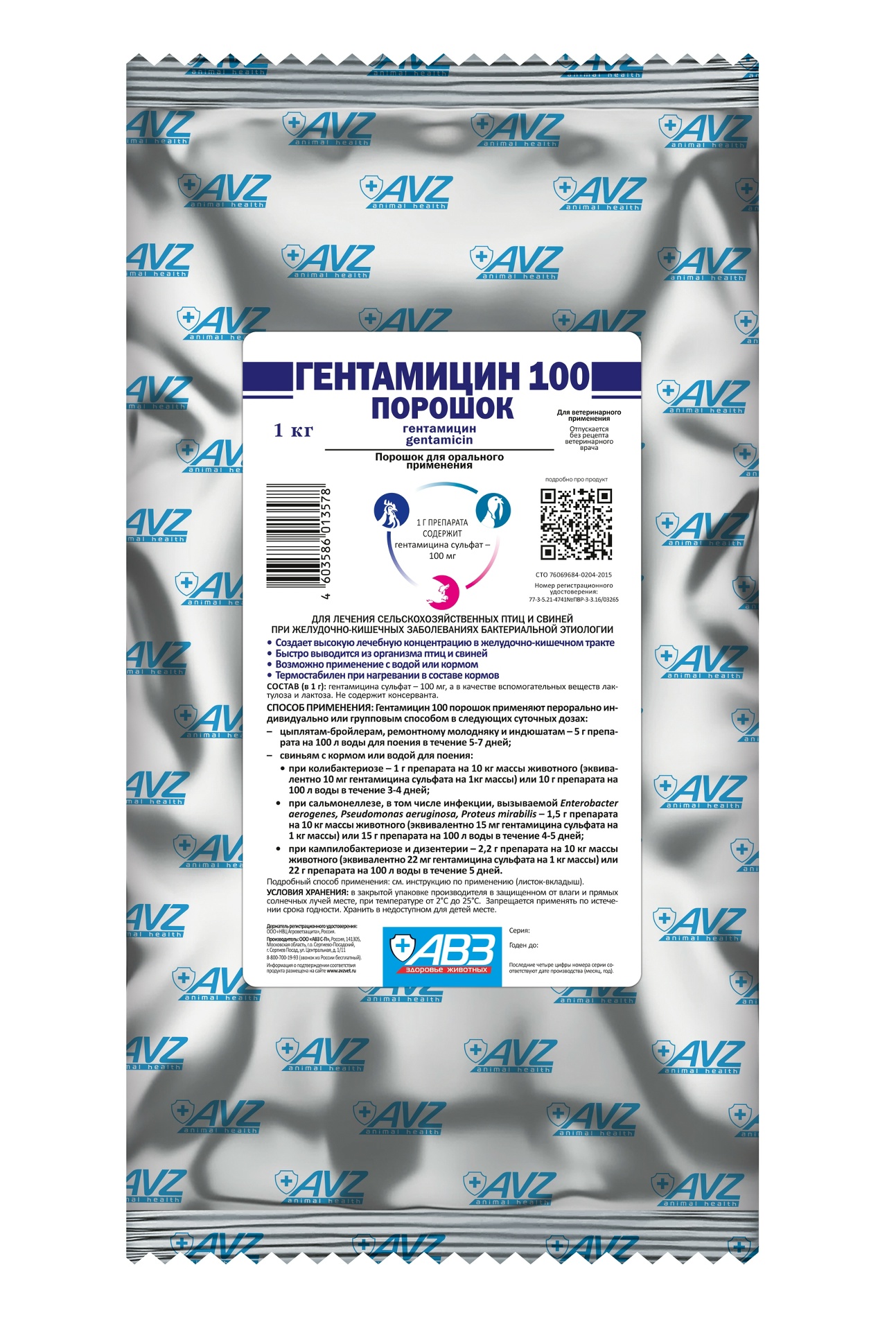 Гентамицин 100 порошок назначают свиньям при колибактериозе, сальмонеллезе, кампилобактериозе и дизентерии, в том числе вызываемых Enterobacter aerogenes, Pseudomonas aeruginosa, Proteus mirabilis, сельскохозяйственным птицам при колибактериозе и других желудочно-кишечных заболеваниях бактериальной этиологии, обусловленных микроорганизмами, чувствительными к гентамицину.