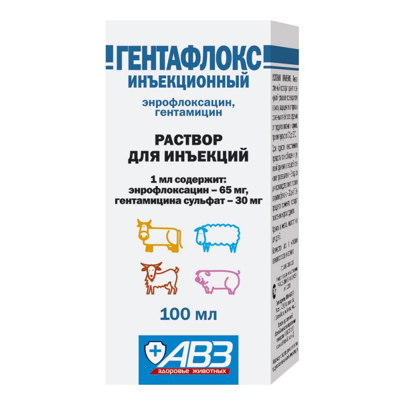 Гентафлокс инъекционный применяют для лечения телят, овец, коз, свиней при инфекционных заболеваниях желудочно-кишечного тракта, респираторной и мочеполовой системы, суставов, мягких тканей и кожи, в том числе, атрофическом рините, бронхопневмонии, колибактериозе, сальмонеллезе, пастереллезе, микоплазмозе, синдроме мастит-метритагалактия и других первичных и вторичных инфекциях бактериальной этиологии, возбудители которых чувствительны к энрофлоксацину и гентамицину.
