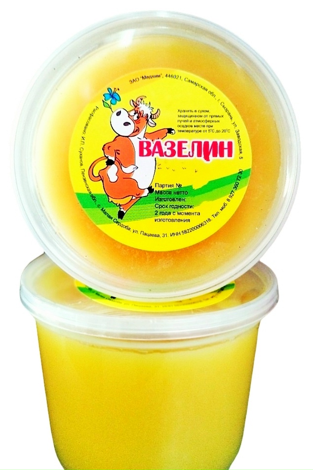 Вазелин можно использовать для обработки вымени животных перед доением, для смазывания различных видов повреждений кожи, а также можно применять как вспомогательное вещество для производства кремов и мазей.